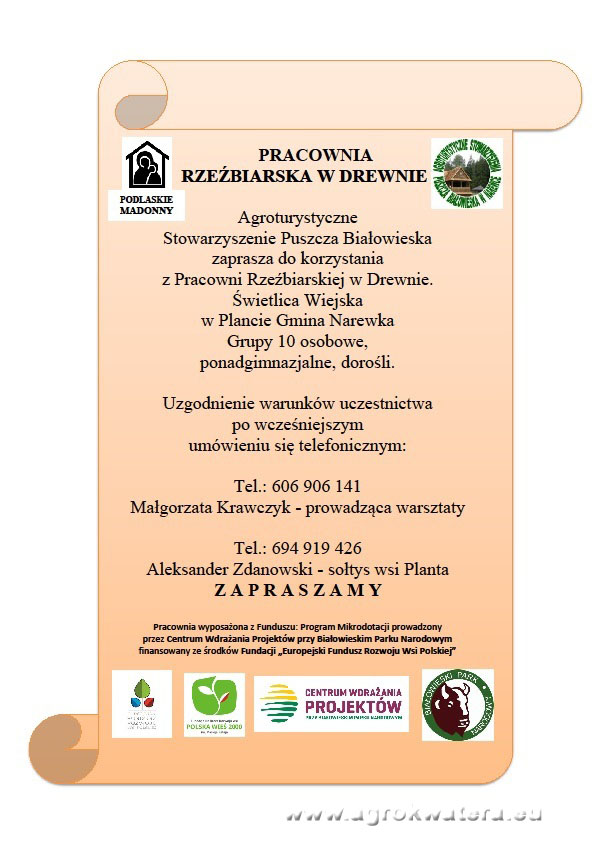 Zaproszenie do pracowni rzeźbiarskiejAktualności » Zaproszenie do pracowni rzeźbiarskiej2016-09-14Zapraszamy do pracowni rzeźbiarskiej w Świetlicy Wiejskiej w Plancie.
